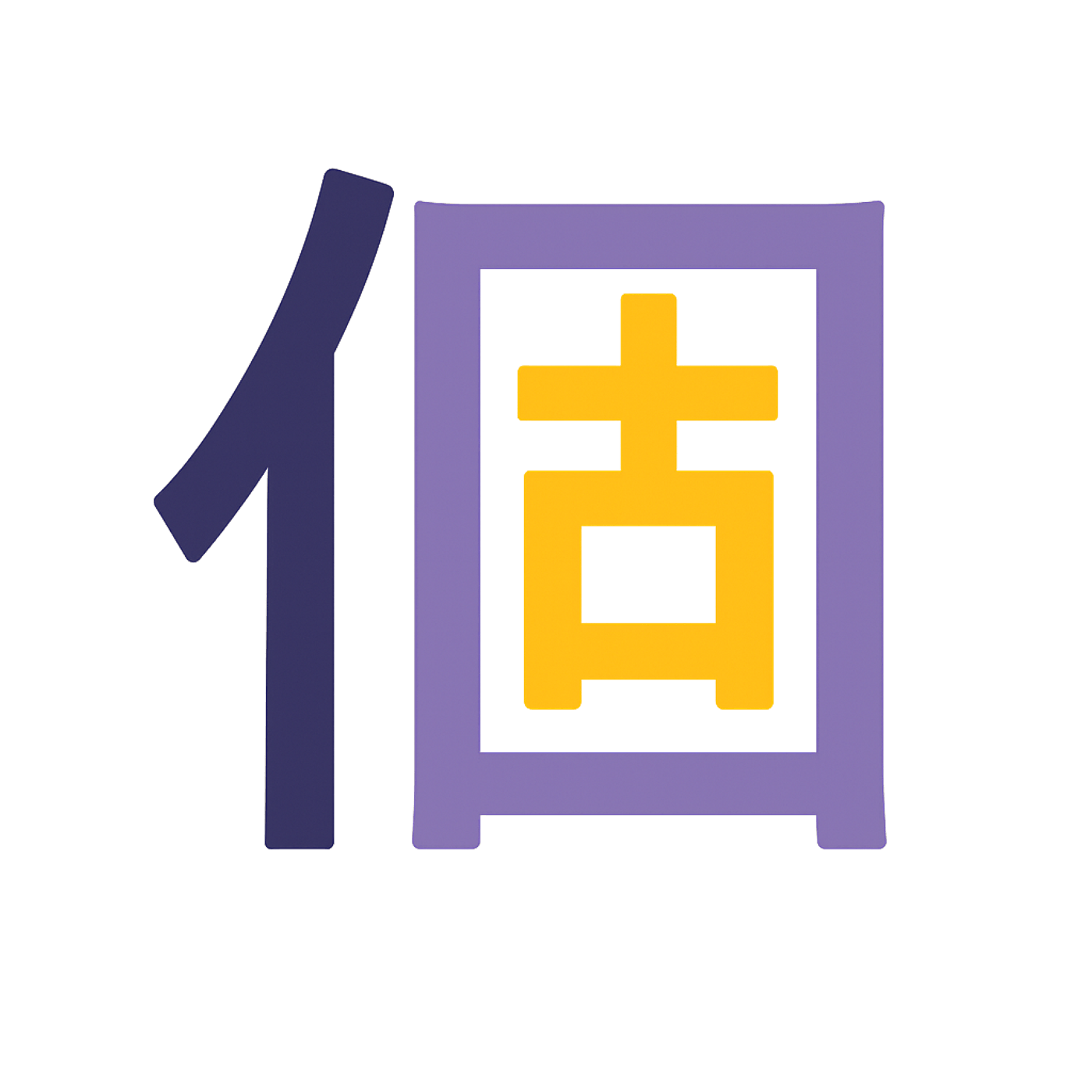 Il kanji 個 rappresenta un essere umano inserito in una struttura: una persona che occupa uno spazio, che ha confini, storia, solidità. Questa architettura visiva comunica l’idea di identità personale come forma definita, stabile nel tempo ma aperta alla relazione.